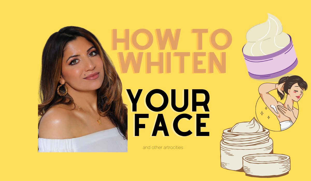 If you are a Pakistani or Indian woman with a pulse, then you have had to face some sort of whitening treatment or cream in your life. as salons sell “whitening facials” and cosmetic companies ladle concoction made with “whitening ingredients’ and labeled as “beauty reams” “fairness creams” “whitening cream” and the horror of all horrors, “bleach cream”. matrimonial ads ask for “fair” bride for a “fair” groom and darker complexions are often looked over for proposals, promotions, or even attention. Parlour wali auntie who is more of your well-wisher than your own flesh and blood advises you: “Baji skin kitni dark ho gayee hai apki koi whitening facial ley lain” or a guy is advised by his friends to use whitening creams to marry well.