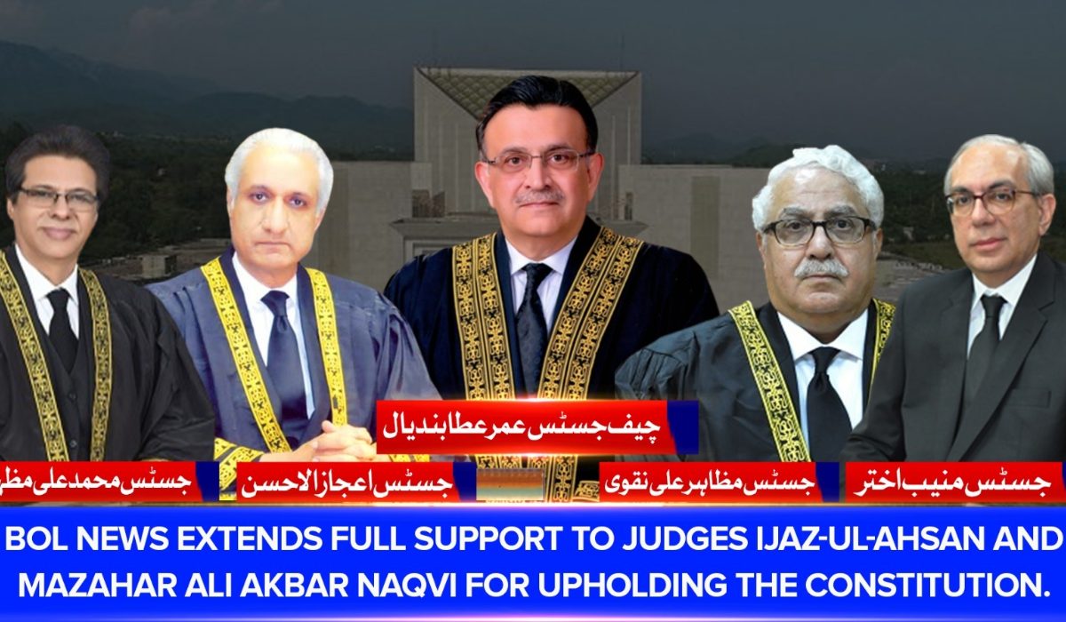 BOL News has extended its full support to Supreme Court of Pakistan judges Justice Ijaz-ul-Ahsan and Justice Mazahar Ali Akbar Naqvi.