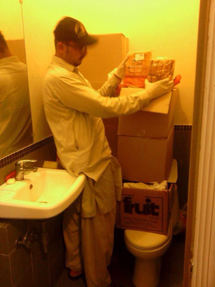 Condition: Cartons in washroomSource: Twimg