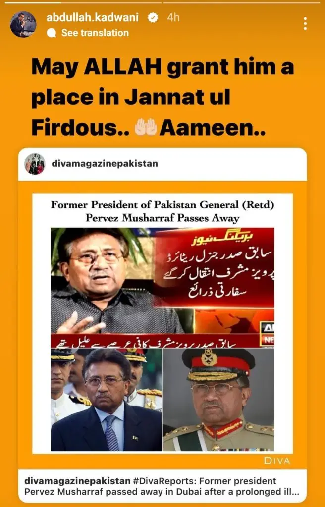 Mehwish Hayat quoted a famous Irish soldier and voiced solidarity with General Musharraf sahib