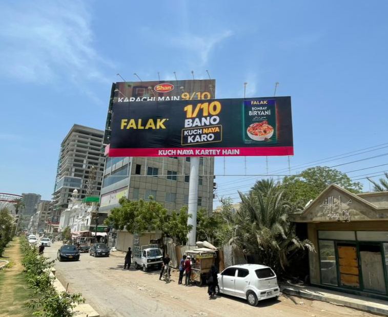 Karachi’s billboard landscape delivered a masterclass in positioning this week. Shan Foods claimed the majority with “Karachi main 9/10 logon ka intikhab.” Directly below, Falak Foods answered with “1/10 bano… kuch naya karo.”