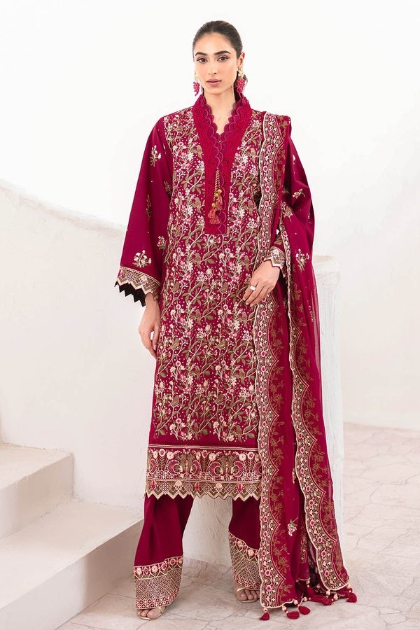 Red 3 Piece Unstitched Embroidered Lawn Suit