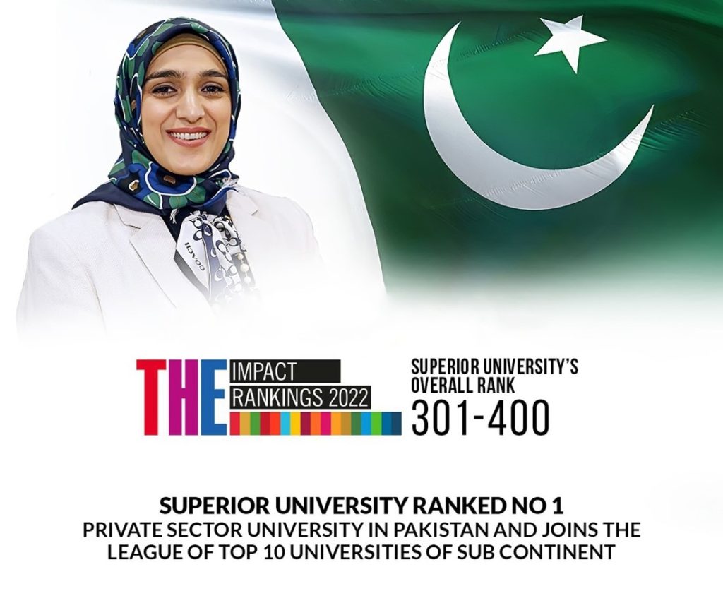 Superior University became Pakistan’s number one private-sector university under the Times Higher Education Impact Ranking 2022. The Times Higher Education Impact Rankings are one of the most renowned global performance tables that assess universities against their commitment to the United Nations’ Sustainable Development Goals 2030 (SDGs). This year’s THE Impact Rankings assessed more than 1,500 universities across 93 countries and regions, making them the largest and most diverse university rankings to date.