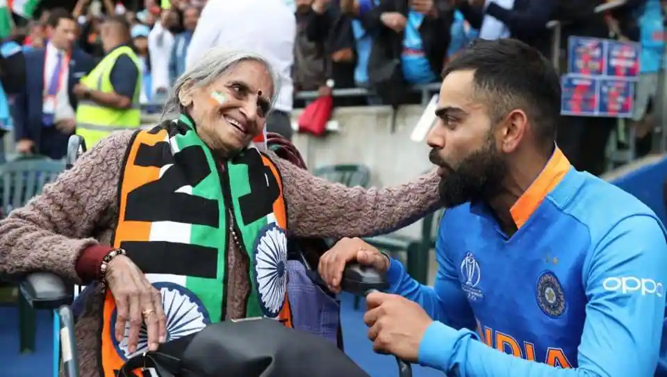As the players retired from the field, Virat Kohli along with Rohit Sharma went straight to meet 87-year-old Charulata Patel, an Indian cricket fan who had already garnered virality online for her zesty support of the team from the stands.